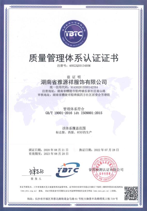 1、企業(yè)概況 湖南省雅源祥服飾有限公司地處湘贛邊境素有瓷城之稱的醴陵郊區(qū),企業(yè)創(chuàng)建于1995年,是行政執(zhí)法制服、被裝的生產(chǎn)企業(yè)。2、組織機(jī)構(gòu) 跟隨改革開放的步伐,我公司不斷發(fā)展壯大,公司董事會下設(shè)總經(jīng)理辦公室、生產(chǎn)部、技術(shù)部、質(zhì)檢部、財(cái)務(wù)部、采購部、業(yè)務(wù)部等部門,下設(shè)有流水線西服生產(chǎn)車間、標(biāo)志服生產(chǎn)車間、襯衣生產(chǎn)車間、... [更多]